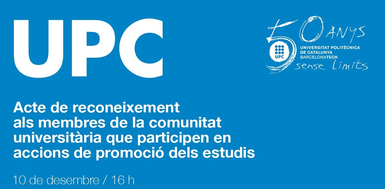 Acte d'agraïment als membres de la comunitat universitària de la UPC que aquest darrer curs han participat en accions i activitats de promoció dels estudis. Durant l'acte es durà a terme una taula rodona sobre "l'experiència en la promoció dels estudis de la UPC".